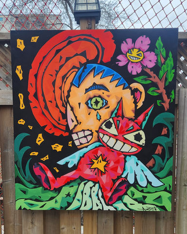 Born and raised in Toronto, Astrobe is a Canadian artist whose journey has been a lifelong pursuit of creativity. He began as an illustrator designing t-shirts and airbrush art before mastering the craft of tattooing for over a decade. Inspired by hip-hop, cartoons, and toys, Astrobe’s work blends nostalgia with a futuristic vision. For the past six years, he's been developing a distinct body of sci-fi-inspired paintings—each piece a crystallized fragment of imagination, infused with emotion and endless possibility. Astrobe’s work captures the awe of discovery, the brilliance of high-tech dreamscapes, and the boundless potential of the future. Now stepping forward as the curator of his own universe, Astrobe shares their energy through paintings, offering visionary works to decorate and inspire.